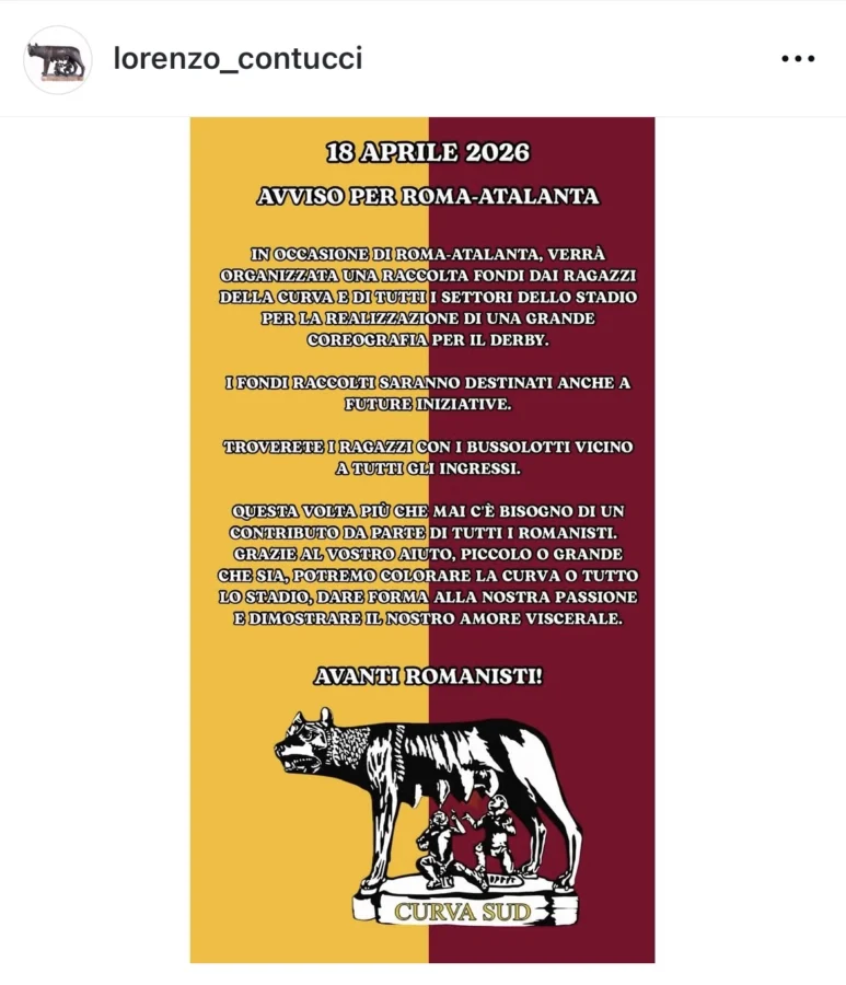 L’annuncio è arrivato tramite l’account Instagram dell’avvocato Lorenzo Contucci, da sempre punto di riferimento per le dinamiche del tifo organizzato.