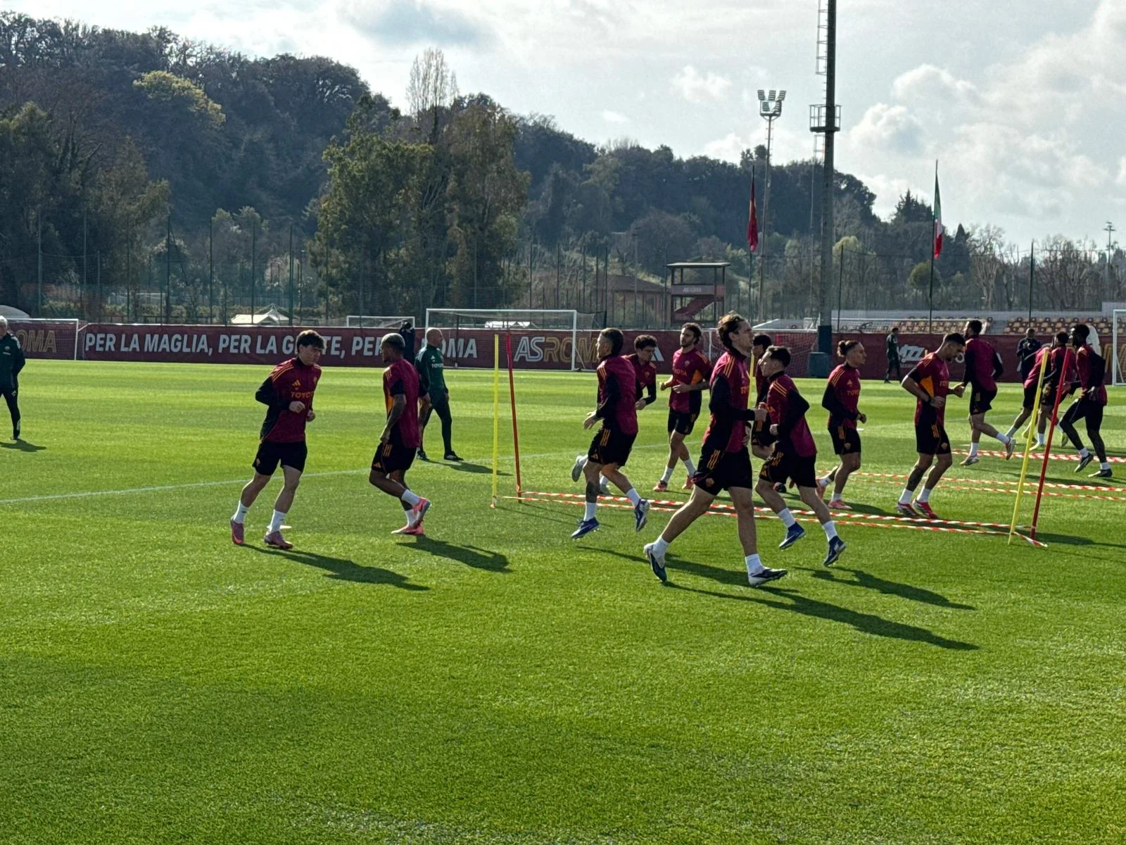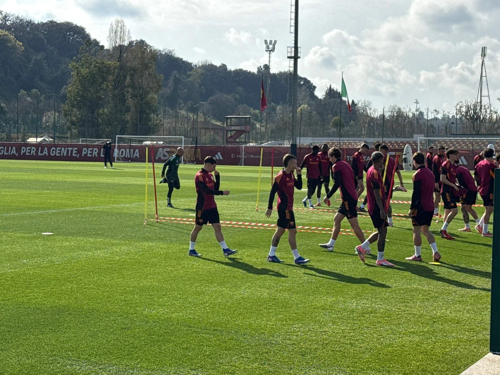 La Roma si prepara per l’impegno europeo tutto italiano contro il Bologna. Alla vigilia della sfida valida per gli ottavi di finale d’Europa League, la squadra di Gian Piero Gasperini ha svolto la rifinitura a Trigoria. Gli scatti migliori della seduta d’allenamento.