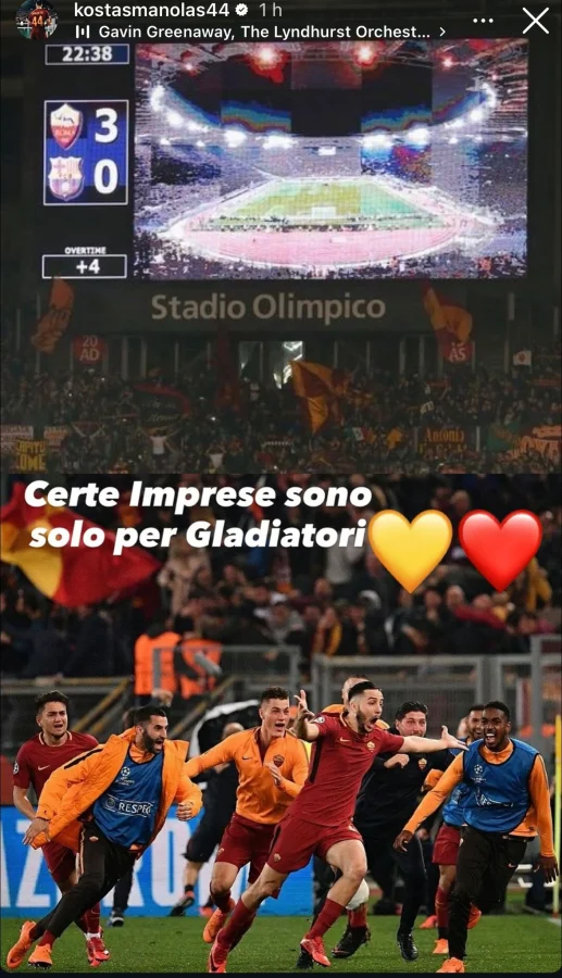 La Juve è uscita dalla Champions dopo aver sfiorato l’impresa contro il Galatasaray di ribaltare il 5-2 dell’andata. Una storia che Kostas Manolas conosce bene, avendolo fatto contro il Barcellona – l’andata finì però 4-1 e c’era ancora la regola dei gol in trasferta -, segnando tra l’altro il gol decisivo. Alla vigilia del big match contro i bianconeri, il greco accende la sfida, ricordando sul proprio profilo Instagram che “certe imprese sono solo per gladiatori”.
