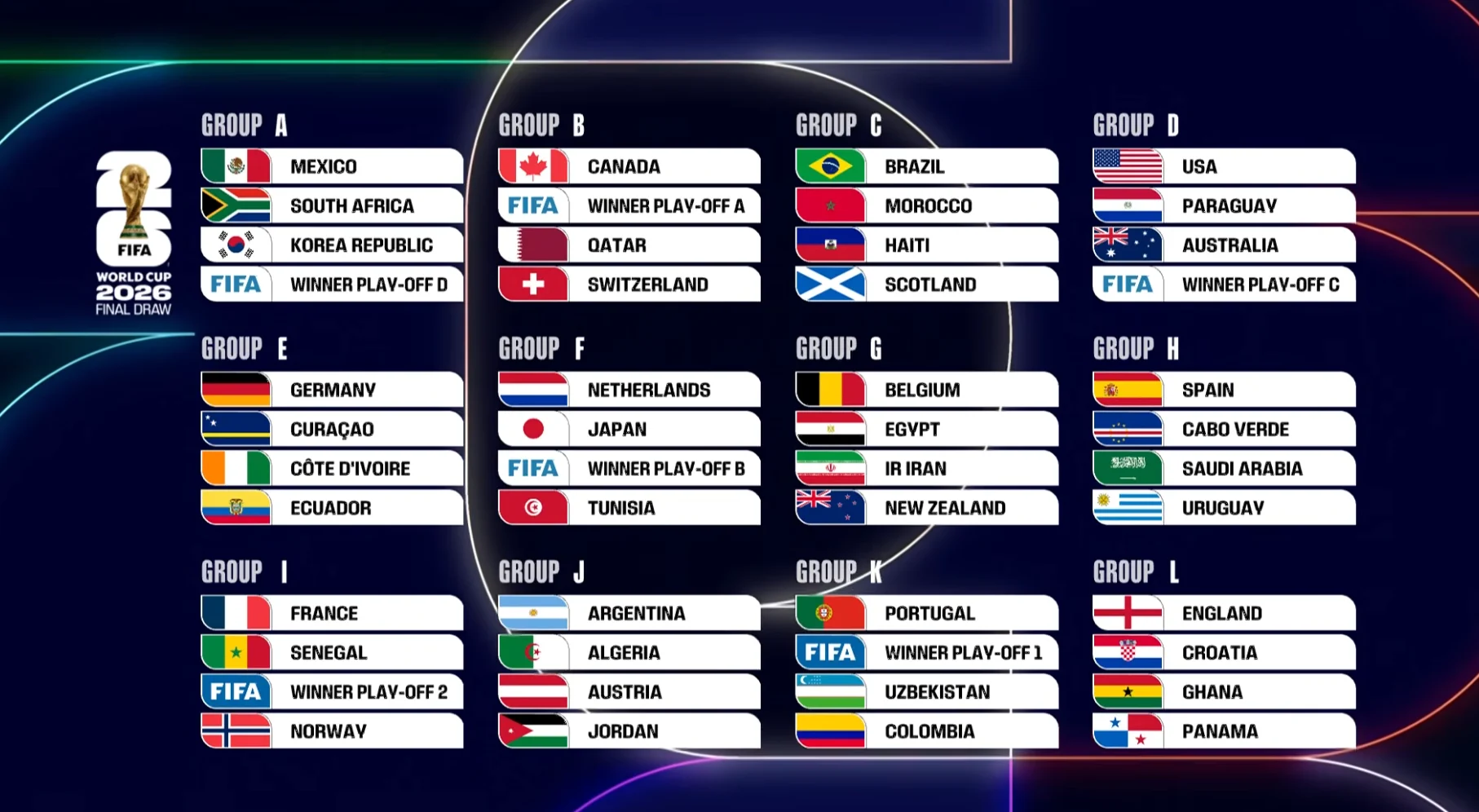 È andato in scena oggi pomeriggio a Washington DC il sorteggio dei gironi dei Mondiali in programma dall’11 giugno al 19 luglio 2026.